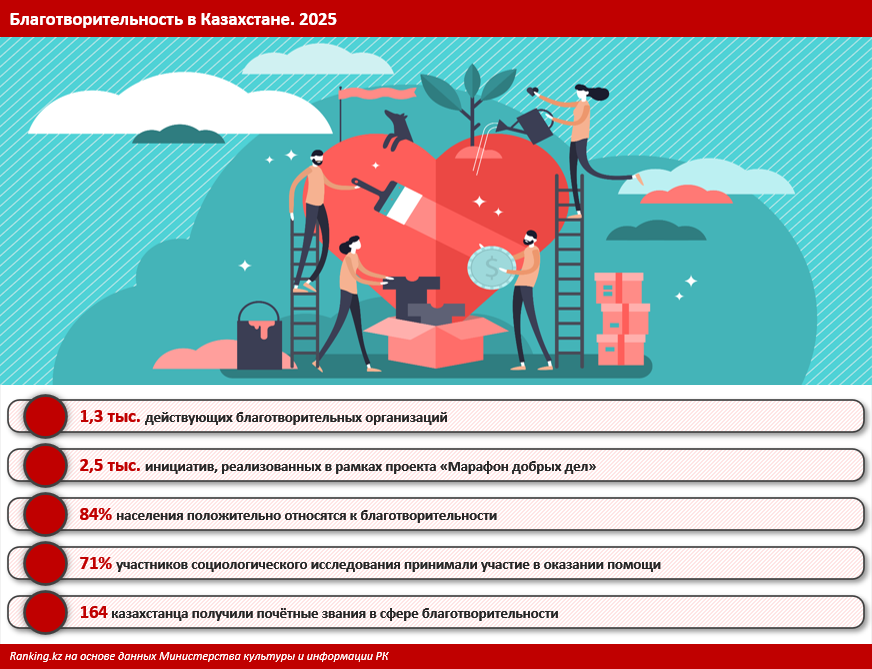 В последние годы власти активно поддерживают инициативы благотворительности. С 2023 года в стране проводится конкурс меценатов, благотворителей, внёсших особый вклад в это социальное направление. В текущем году 33 казахстанцам присвоили звание Почётного благотворителя, всего же в стране насчитывается уже более 164 таких граждан.
