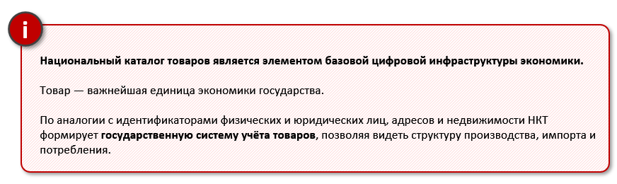 НКТ вводит однозначную идентификацию товара на всех этапах обращения. Это обеспечивает корректную аналитику и объективную оценку стоимости, в том числе в государственных и квазигосударственных закупках, где сейчас наблюдается широкий разброс цен на формально одинаковые позиции. Для этого в каталоге фиксируются базовый набор атрибутов для коммерческого оборота и расширенный для электронных госзакупок.