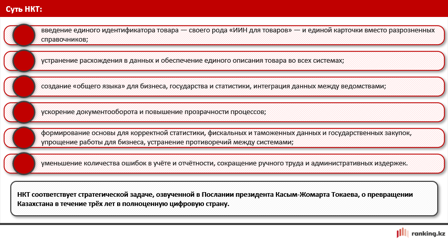 В целом НКТ является базовым инструментом цифровизации товарооборота и экономики в рамках трёхлетнего горизонта цифрового развития, предусмотренного Посланием президента Касым-Жомарта Токаева, обеспечивая прозрачность, сопоставимость данных и справедливые условия для рынка.